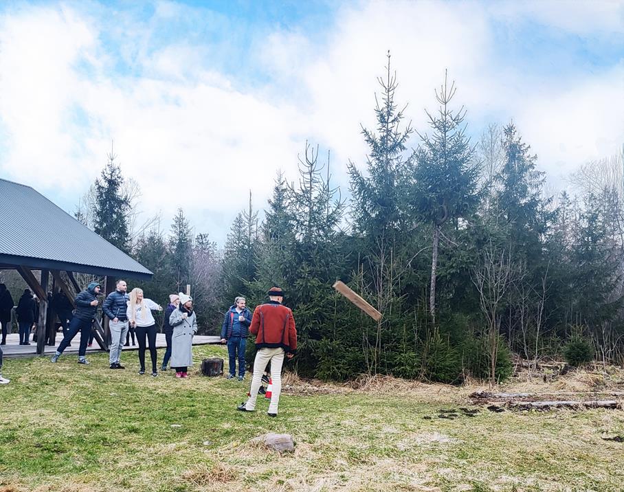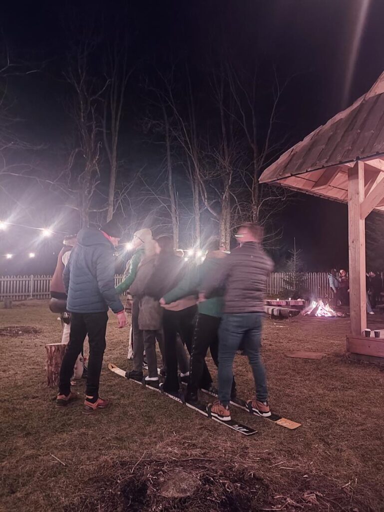 The tasks are usually quite simple – such as hammering a nail, throwing a horseshoe or a stake, shooting an air gun, or running giant skis. It can also be supplemented in the summer with, for example, a task involving production of “oscypek” cheese, or a station where participants will learn to dance or sing. There are a lot of possibilities, which we try to change and prepare each time so that the customer is convinced that everyone will have a great time.